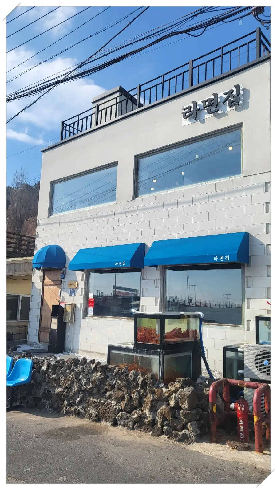 한적한 바닷가마을 세련되보이는 건물이 하나 있는데 그게 라면집입니다.