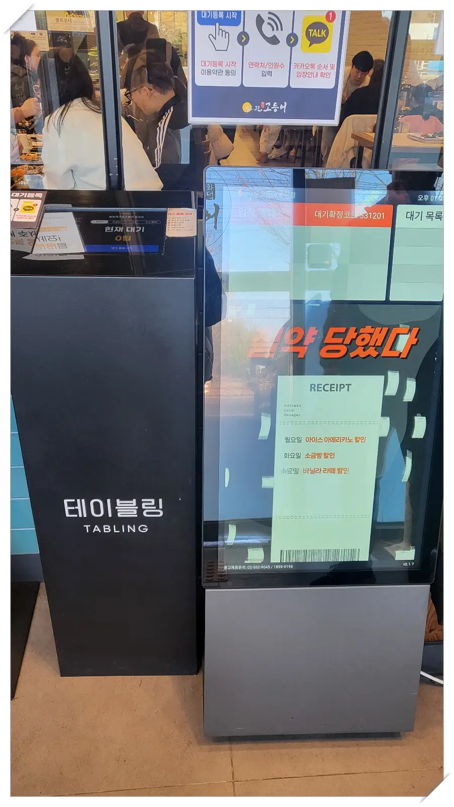 입구에는 테이블링 서비스를 사용할수있는 키오스크가 있구요.